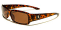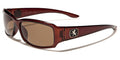 These cool sunglasses by Khan for men are polarized to better protect your eyes from harmful ultraviolet rays. The frame is made of plastic and has a sleek design that is flowing and simple. The arms start thick off the temples and taper smoothly to the cut out section at the ear. The Khan logo is large and proud on the side of the arms. The lenses are small and rectangular, giving the wearer a studious and intelligent look. Choose from several patterns and lens finishes suiting your taste.