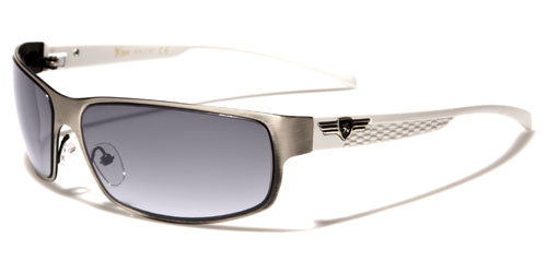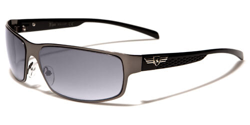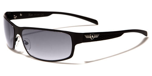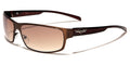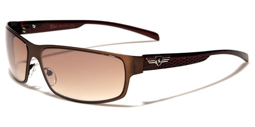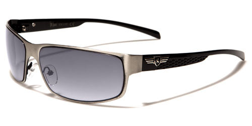 Lightweight and thin, these sunglasses for men by Khan will fit comfortably and can stay on all day without you even noticing. The shades are metal and plastic, flexible yet strong enough to hold up despite their spare construction. The arms have an added panel that gives support, and then they taper down and stay straight to the ear. The Khan logo is seen in silver and black on the side. The lenses are rounded rectangles with a semi-transparent finish that still protects your eyes from ultraviolet rays.
