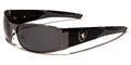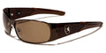 These cool shades by Khan for men feature a sleek and aerodynamic look and feel that is sure to bring out the inner adventurer in you. The frame is metal, and the arms are plastic, designed to be strong and durable, as well as flexible and comfortable. The arms come straight off the face and show off the Khan logo on the side and a two-color earpiece. The lenses are small and oval with adjustable nosepieces for better fit. Choose from several frame and lens color varieties.