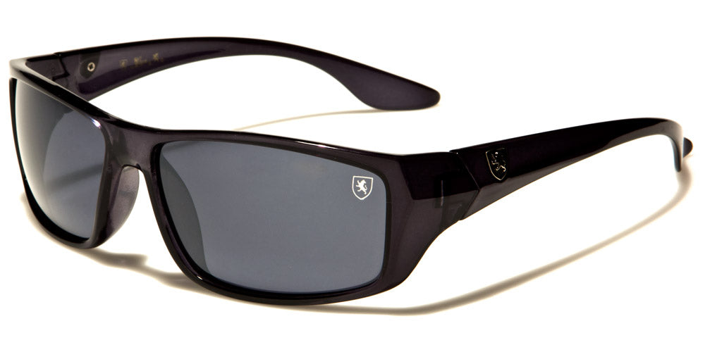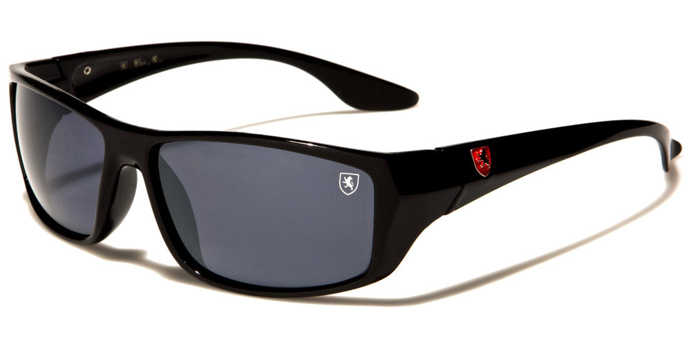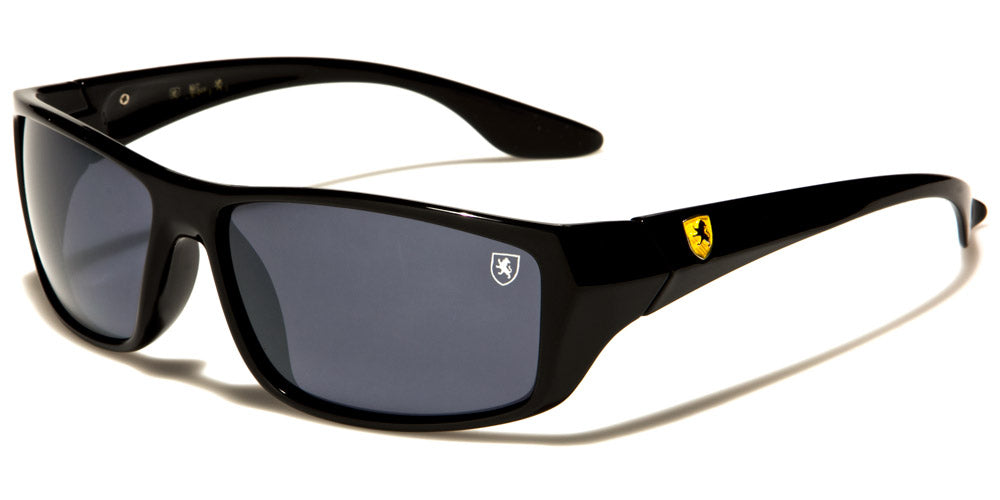 These men's Khan rectangular bulk sunglasses are sophisticated and glamorous. They feature a Khan logo in the upper corner of the left lens as well as on the arms in black, yellow and red. Frames come in black, translucent gray and brown tortoise, and lenses come in gray and brown. These sunglasses also feature UV400 protection, which provides eyes with the most intense protection of all. These wholesale sunglasses are sold in boxes of 12 pairs.