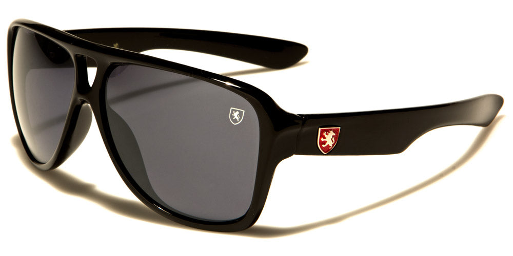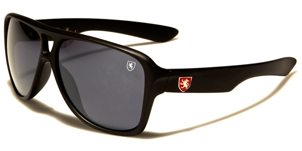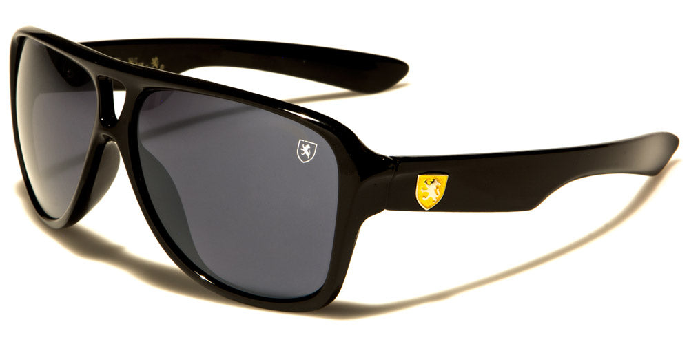These men's Khan rectangular sunglasses are sophisticated and glamorous. They feature a Khan logo on the arms and upper corner of the left lens. Color choices include dark smoke lenses with glossy and matte black frames and a variety of Khan logo colors, ranging from black to red to yellow. These sunglasses also feature UV400 protection, which provides eyes with the most intense protection of all. The sunglasses are sold in bulk in boxes of 12 pairs.
