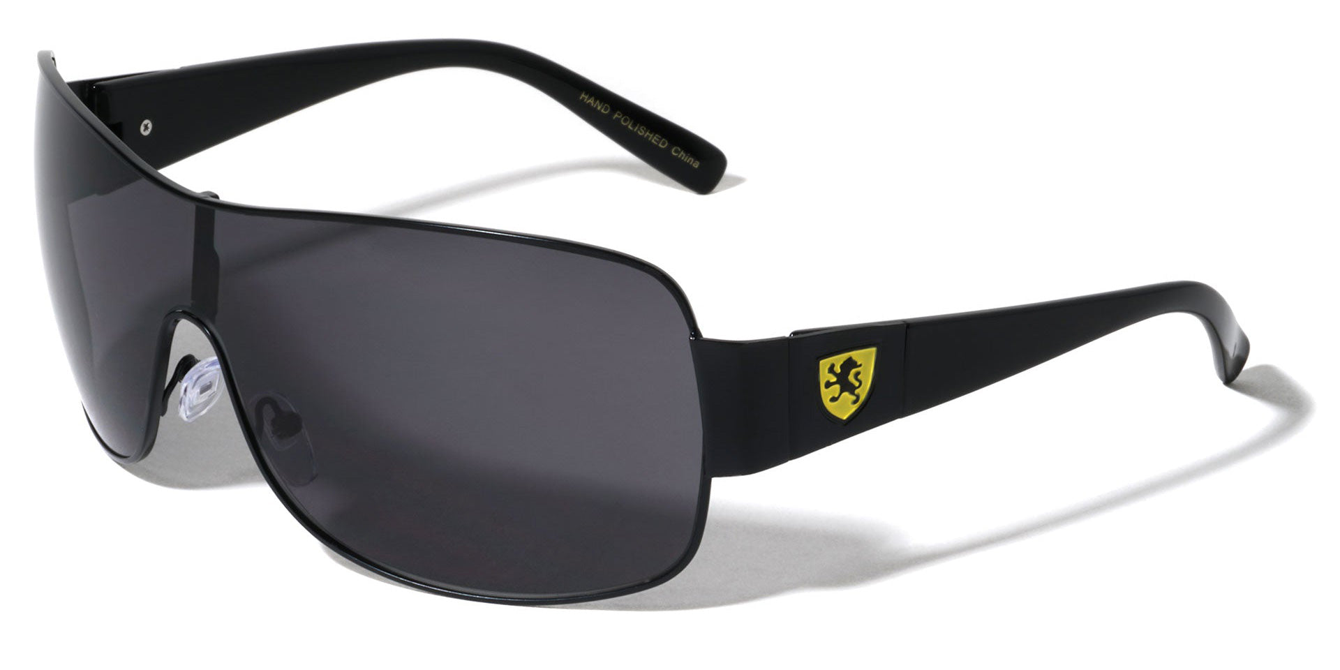 Simple and eye catching at the same time, these nice shades by Khan are made for men and women who want an understated simplicity in their choice of apparel. The shades are metal and plastic, made to fit comfortably and hold up for a long time. The arms are straight with a taper down to the curved ear and feature the Khan logo on the side. The lenses are dark for better protection from the sun and are shaped as a shield with adjustable nosepieces.