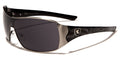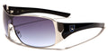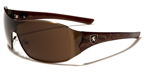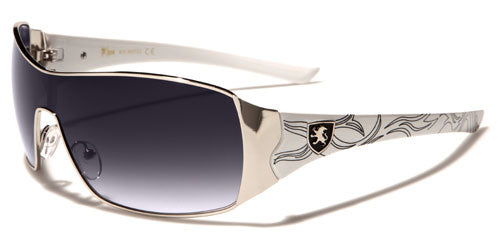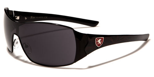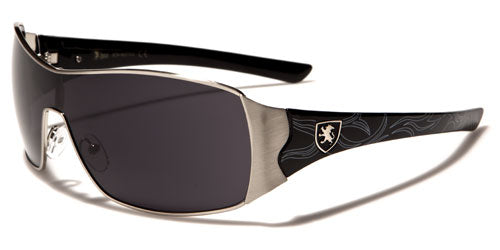 Stylish and right for any occasion, these cool sunglasses for men and women are designed by Khan and are sure to get you noticed. The frame is made of metal, and the arms are made of plastic for strength and flexibility. The arms start thick and taper down to the ear, and they feature the Khan logo and various design elements all along. The shield-style lenses are dark and rectangular in shape with adjustable nosepieces in the middle for better fit.