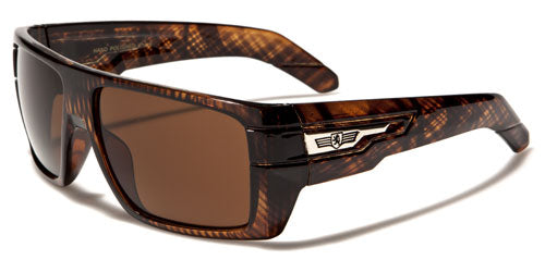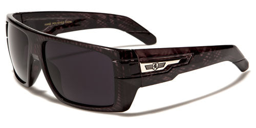 Thick and boxy with an attitude all their own, these ultra-hip shades by Khan are made for men who want to stand out and strut their stuff. The frame is all plastic with several design elements that draw the eye, including the Khan logo displayed proudly on the side. The arms start square and step down, then drop down at the ear. The lenses are dark rectangles, set in the flat front of the frame. These nice shades come in various colors and patterns to suit your taste.