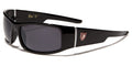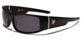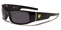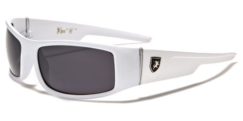 These nice sunglasses by Khan for men feature a thick body and small rectangular lenses. The lenses are dark, offer great UV protection to your eyes and come in different colored finishes. The frame is made of plastic with a variety of colors to choose from. The arms come right off the temples and then step down and flow straight back to the ear. The Khan logo is shown proudly on the side next to a silver vertical divider line. Buy in bulk for excellent savings.