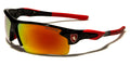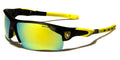 These Khan wraparound sunglasses for men will never go out of style for the sporty set! These trendy sunglasses feature a semi-rimless wraparound style, mirrored lenses that offer UV400 protection and come in distinctive color combinations. Made of durable and lightweight high-quality plastic, you can enjoy wearing the glasses in comfort. These sunglasses come with silver or black frames with bold splashes of color in red, yellow, blue or white. If you have a sunglass store, be sure to stock up on these bestsellers.