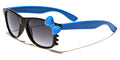Cute and stylish, these sunglasses for kids feature a colorful bow on the outer edge of the lens that draws attention and will get compliments. The frame is made of light plastic, shaped to fit comfortably and tough enough to hold up to the most curious and vigorous inspection. The arms are straight with a curve in the classic style. The gradient-smoke lenses are rounded and offer ultraviolet protection to young eyes. Buy a bunch for the whole block and save with bulk pricing.