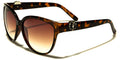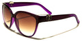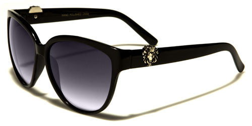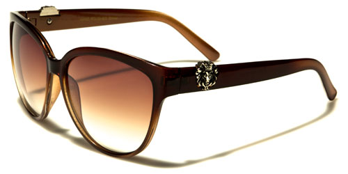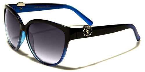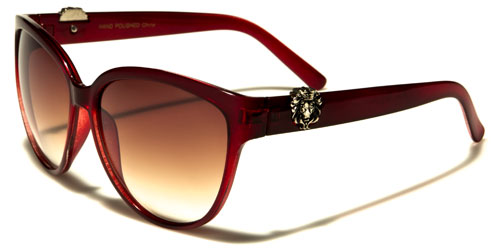 Cat eye sunglasses make excellent eye candy! These Kleo sunglasses complement a woman's trendy lifestyle while protecting the eyes from the sun's UV rays. These lightweight, but durable, bulk sunglasses prove that quality and style do not have to come with a steep price tag. The sunglasses feature a molded nose piece and two-toned gradient design. The upper rims come in black, red, tortoise or brown. In the black versions, another color blooms at the lower rims and at the temple tips. These second colors come in blue, maroon and purple. The metal logo of a lion is attached at the temples, on both sides of the sunglasses.
