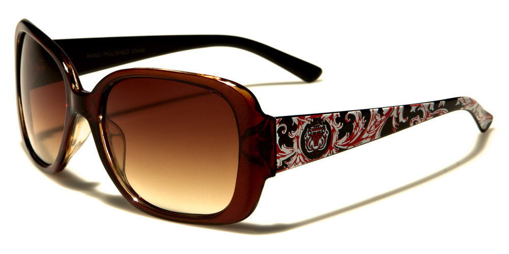 These Kleo brand plastic-frame tortoise-pattern women's sunglasses aren't your average pair of shades. They have an elegant pattern on the side that's different from anything else you might find. That's what fashion is all about. Fashionable individuals want to take chances and reap the benefits if everything goes right. Everyone searches for sunglasses that will make them stand out in a crowd. They try all sorts of sunglasses and never get the kind of results they want. These sunglasses are different in that they are bold, but not so bold that they overshadow the outfit with which they're partnered.
