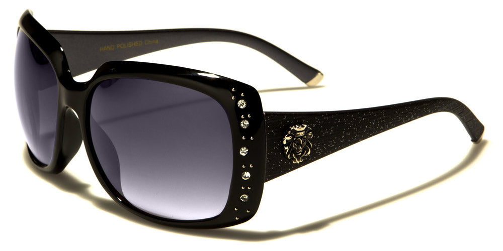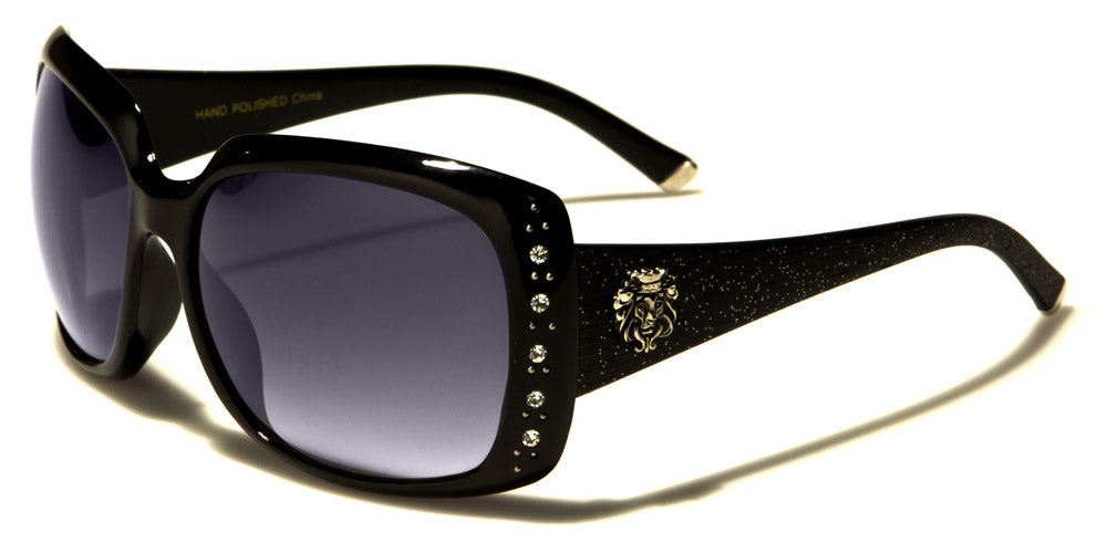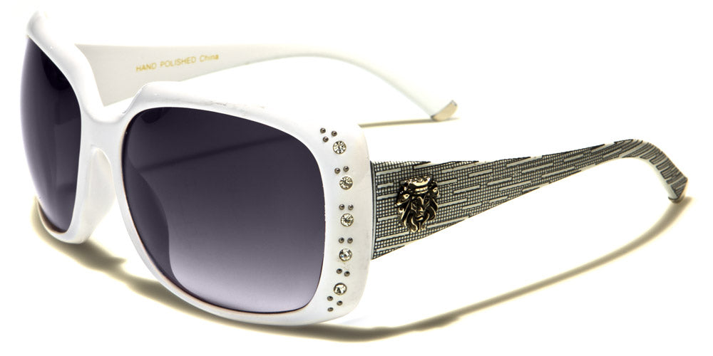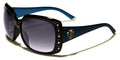 These rectangle Kleo bulk sunglasses are designed for stylish women who cannot wait to grasp the latest sunglasses trends. These plastic sunglasses feature an oversized style that includes the distinct Kleo logo on the temple and highlights rhinestone along the sides of the frames. Bejeweled and stylish, these popular sunglasses come in several colors, including black, white, brown and blue, and feature several earpiece design prints. These bulk sunglasses are available in quantities of one dozen and feature a wide assortment of colors, which makes them ideal for specialty women's shops, kiosks, novelty stores and other retail establishments.