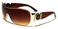 These fierce and fabulous Kleo shield sunglasses let everyone know you are a woman of style and substance. This pair combines comfort, fun and functionality with its UV400 lenses, lightweight metal-and-plastic combo, plus its outrageously stylish design. This pair features a single lens with silver or gold metallic rims and thick metal temples that hold the distinctive round metal Kleo logo. The arms taper off gracefully and come in black, white, tortoise brown or pink. The lenses come in gradient smoke or gradient brown.