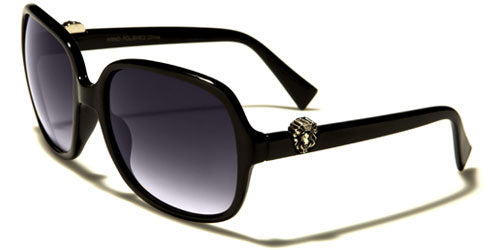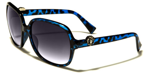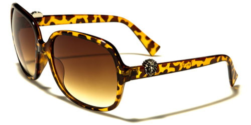Simple but sharp, these Kleo bulk sunglasses come in solid black or in various shades of tortoiseshell. These sunglasses feature wide, full rims, a thick bar for the bridge and a molded nosepiece. The wholesale sunglasses can be mixed and matched to a casual and stylish outfit. The tortoiseshell plastic frame and stems are almost transparent and come in orange, white, green, blue and purple. The lenses come in gradient smoke or gradient brown. The metal Kleo logo of the lion's head is located on both sides of the sunglasses. The lightweight plastic material provides a comfortable fit that makes this pair great for everyday wear.