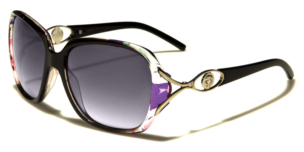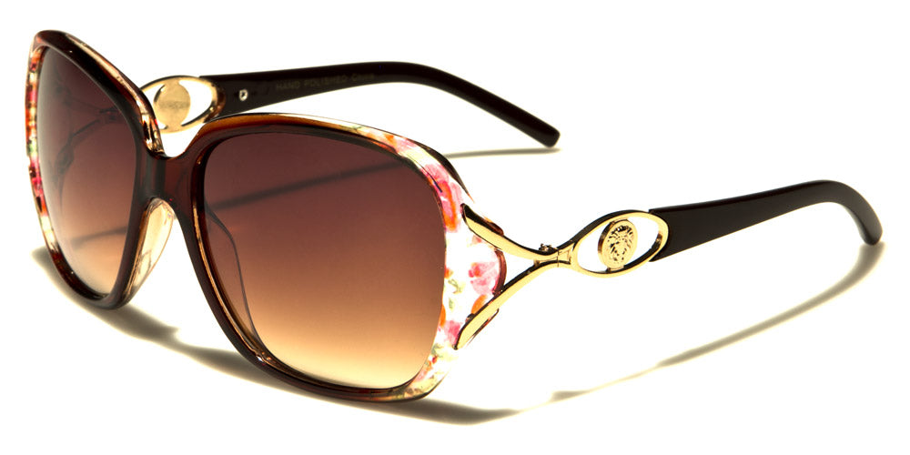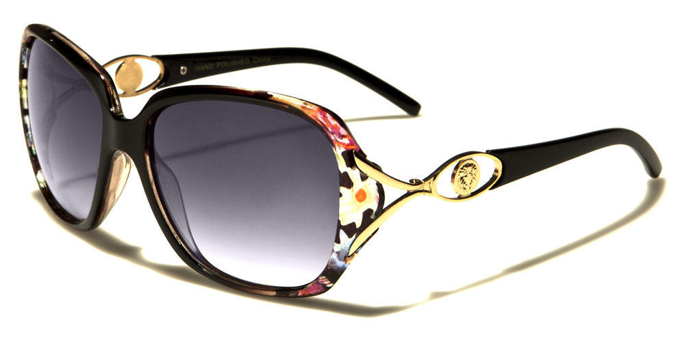 These Kleo sunglasses feature a rectangular design that highlights a plastic floral pattern and has metal pieces on the temples and earpiece area. Giving an upscale appearance to these sunglasses, these Kleo designs are fashionable and are sure to garnish attention from friends, family and passersby. Color options include black and gold, floral patterns with gold and black, floral patterns with silver and black, floral patterns with gold and brown, and tortoise print with gold and brown. Unique and stylish, these sunglasses are perfect for upscale women's boutiques and retail establishments geared toward selling women's accessories.