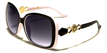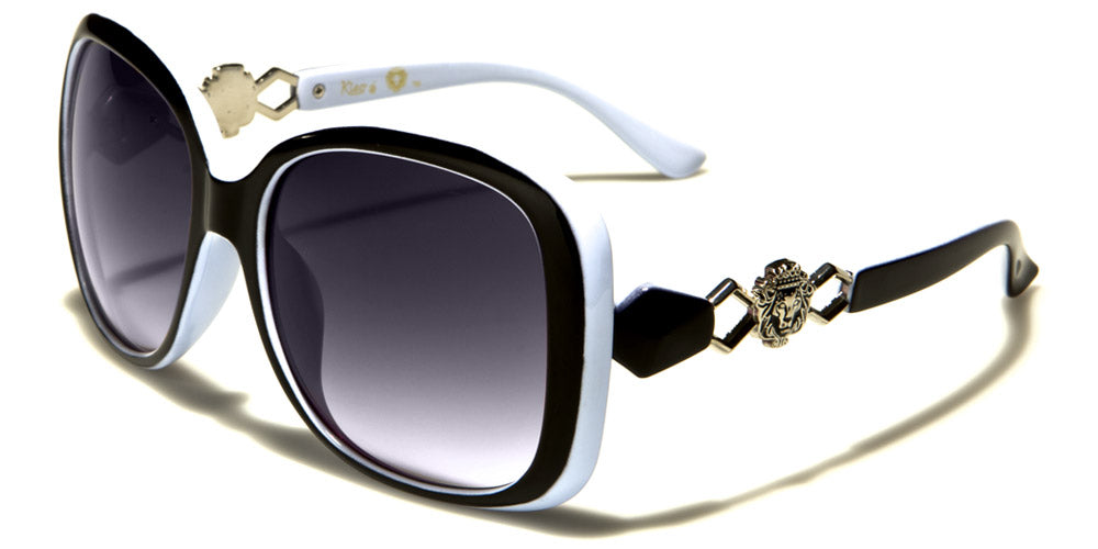 These Kleo two-tone plastic oversized butterfly sunglasses are the height of today's fashion. Featuring a square shape, these plastic sunglasses feature the telltale Kleo adornment, which is incorporated into the arms of the sunglasses. Modeling the latest fashions from upscale designers, these affordable sunglasses are ideal for retailers to regularly keep on hand year-round. Lenses include gradient tones, which give these sunglasses the ultimate refined appearance. Colors include black with silver, black with gold, black and beige with gold, black and pink with gold, black and light blue with silver, and brown tortoise with gold.