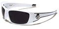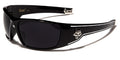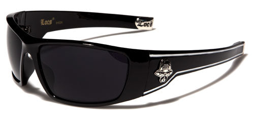 Locs has designed a pair of sunglasses perfect for the man who wants to look tough and sport his style and attitude. These shades are made of strong plastic and show the Locs icon boldly on the side. The frames are strong and comfortable, ready for anything. The arms come flush off the face, then step down and stay straight to the ear with a slight inward curve. The lenses are rectangular and dark for maximum privacy and ultraviolet protection.