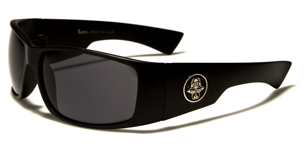 Motorcycle riders will love these matte black plastic sunglasses by Locs made for men. They are tough looking and tough acting, made for comfort, yet strong and durable enough for your long road trips. The arms are thick, feature the Locs icon on the side in silver and have a cut out with a point at the ear. The lenses are rectangular and dark, giving you protection from wind, road dust and ultraviolet rays. These shades are for tough guys on the go.
