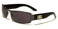 Sporting a unique and noticeable gunmetal finished frame, these men's sunglasses by Locs are a must have. The black plastic arms taper to a curve near the ear and feature the silver Locs logo. The front frame narrows and changes to a gunmetal finish around the lenses. The lenses are rectangular and offer maximum protection from ultraviolet rays as well as wind, rain, dust and other debris. These sunglasses are perfect for the man looking to make a statement with his eyewear. These glasses are available in bulk at one dozen per box.