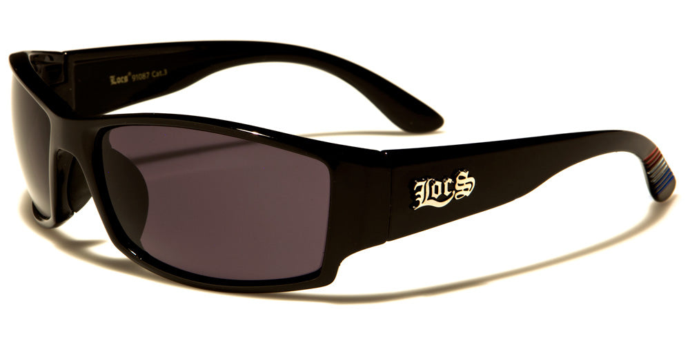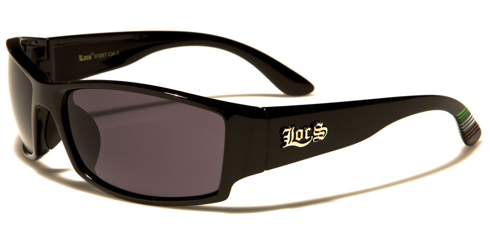 There's more than meets the eye with these sunglasses from Locs. The classic, black plastic frame is a timeless simple look, but the tamed design features are what make these truly special. The silver embossed brand emblem on each temple arm is highlighted by multiple lines of different colors at the ear pieces. While these won't necessarily be noticeable during wear, they give a simple look a little something extra. These sunglasses are sold in bulk by the dozen.