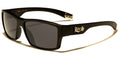 Minimalistic and classic, with just a little bit of edge -- that's how to describe these lookers. Shaded, UV-blocking rectangle lenses are surrounded by solid black plastic frames. The temple arms add a bit of character through a drastic shark-fin contour and metallic Locs logo near each hinge. With clean lines and a simple design, these sunglasses work well with any ensemble. These sunglasses are sold in bulk by the dozen.