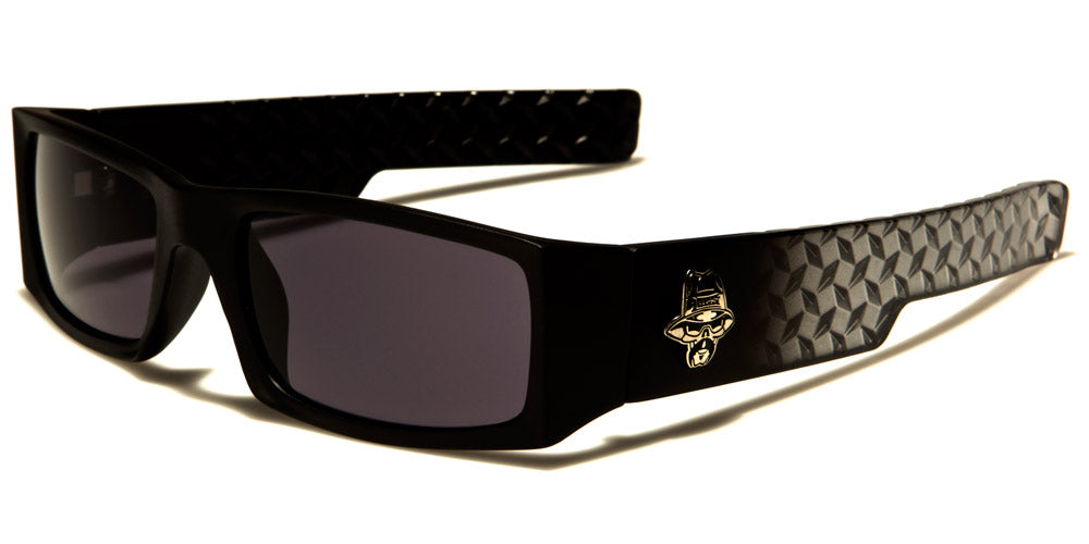 These Locs rectangular sunglasses for men give your look a trendy gangster vibe with their rectangular frame, molded nose pads, slightly bent bridge and uber thick temples. The arms feature straight earpieces, an engraved silver diamond design and a distinctive Locs gangster logo of a mustachioed man. The solid smoke lenses provide UV400 protection to keep you safe from the sun's harmful rays. These bulk sunglasses are made of lightweight and high-quality plastic and are sold by the dozen.