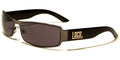 Wide arms on these dressy sports sunglasses keep them firmly on your head. Classic black or dark silver and black plastic frames and arms go with any outfit. A narrow bridge and adjustable nose pads contribute to the sexy sporty look. Arms angle into curved earpieces and are emblazoned with a metallic Locs logo. Whether you're playing, driving, or walking the boardwalk, these shades are the perfect way to protect your eyes from harmful UV rays. Your order will arrive with a selection of all three color combinations available in this style. These sunglasses are sold in bulk by the dozen.