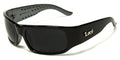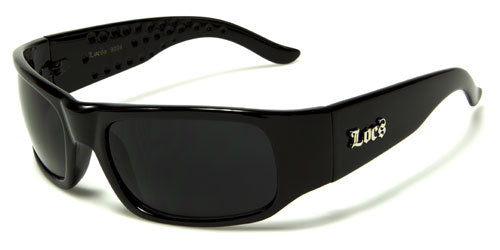 Square and bold, these sunglasses for men by Locs are just what you need to sport your own attitude and style. The frame is made of strong black plastic that is shaped to fit and is tough enough to hold up to rough treatment. The arms start thick and taper at a curve by the ears, and the Locs logo is seen on the side in raised silver letters. The lenses are dark rectangles that offer excellent privacy and protection. Buy in bulk for great savings.