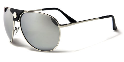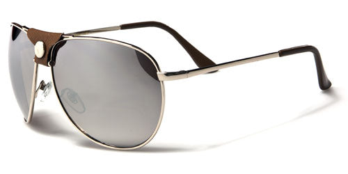 Aviator sunglasses give you a cool and serene look, and these shades by Air Force do that and more. Made for men with a metal frame, the glasses will flex and bend as needed to maintain their shape and fit you comfortably. The arms are thin and straight with a plastic coating over the curved earpieces. The lenses are large and dark with vinyl nosepieces and a leather snap covering over the double-bridge structure.