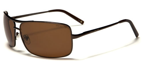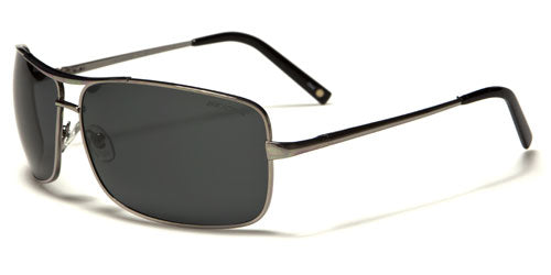 Rectangular sunglasses with a thin frame, these nice shades by BeOne are made for men who want a studious look but still want to be hip and on the cutting edge of style. The frame is all metal, lightweight and flexible to rest easily on your head. The arms are thin and straight with a plastic coating over the earpieces that provide a nice fit. The lenses are large and boxy-looking and are set between a double-bridge support that adds strength.