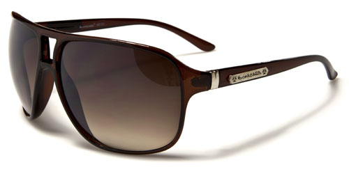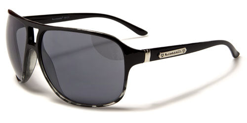 These are not your average aviator sunglasses. They are bold and stylish and in your face. Made by Biohazard for men, these shades will get you noticed no matter where you are or what you're doing. The frame is made of plastic, yet thin and lightweight throughout. The arms are straight and feature the Biohazard logo on the side next to a double vertical silver divider. The lenses are oversized and dark between a double-bridge structure that lends strength.
