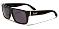 Locs has created a hip looking pair of men's shades that combine a modern style with a throwback look that really works. The frame is all plastic with a straight and squared-off look and a close fitting shape. The arms are straight with a slight taper and curve at the ear. The Locs logo is seen on the side in silver script next to a vertical divider. The lenses are rectangular with rounded corner, and they are dark enough to protect your eyes and your privacy.
