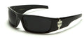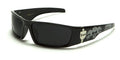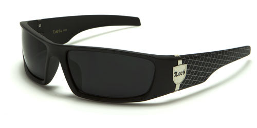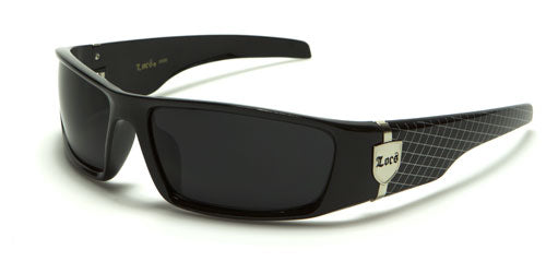 Locs has designed a cool pair of shades for men with a low profile and a hip look that demands attention. The frame is made of plastic, molded to fit your head comfortably with a lightweight and durable construction. The arms start thick and taper to a straight run to the ear. The Locs logo is seen in black against a silver shield on the side. The lenses are dark with an ultraviolet finish. Buy these great shades in bulk for excellent savings when you purchase.