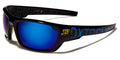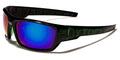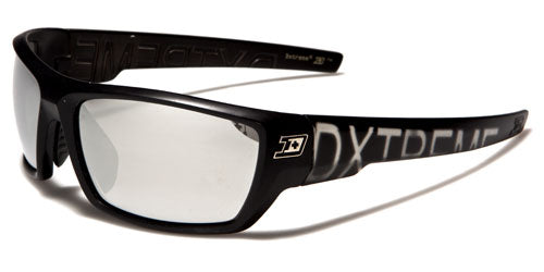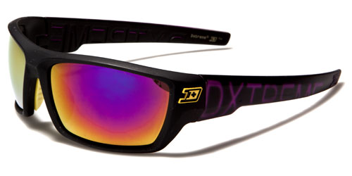 Sports glasses with attitude, these protective glasses by Dxtreme scream style and grab attention. The frames are made of plastic and designed to be tough enough to withstand the most extreme sports. The arms feature "Dxtreme" written all along the length and have the logo at the face edge as well. The lenses are rectangular in shape and are mirrored for added ultraviolet protection as well as privacy. These shades are available in different lens and highlight color sold by the dozen.
