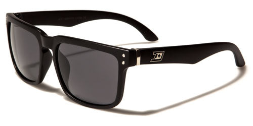These men's sunglasses by Dxtreme are spare and stylish, perfect for the guy looking for shades and not attention. The classic frame is plastic and lightweight, but still strong and durable. The arms feature the Dxtreme logo on the side and have a sweeping look with a sharp curve down around the ear. The lenses are square and dark to give you privacy and excellent ultraviolet protection. These hip shades come in different lens and frame colors sold by the dozen.