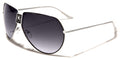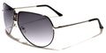 Cool aviator sunglasses with an added flair, these nice shades by Khan are made for men who know how to look good. The Khan logo is front and center on these glasses, right in the middle of the frame between the lenses. The frame is all metal, flexible and strong while remaining lightweight and comfortable to wear. The arms are thin, and the earpieces are curved sharply with a plastic coating. The lenses are large and dark, offering privacy and protection to your eyes.