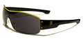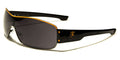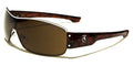 These men's Khan-brand metal-plastic shield aviator sunglasses might have "aviator" in their name, but they don't look like aviators at all. Instead, they take some of the promising elements from other shades that are available on the market. Normally, aviators have two lenses separated by a small metal bridge. That's not the case with these shades. A majority of the frames on these sunglasses is black with color accents of red, orange, yellow, green, blue and white. These glasses come in other appealing varieties that are sure to pique the interest of anyone who's in the market for a cool pair of shades.