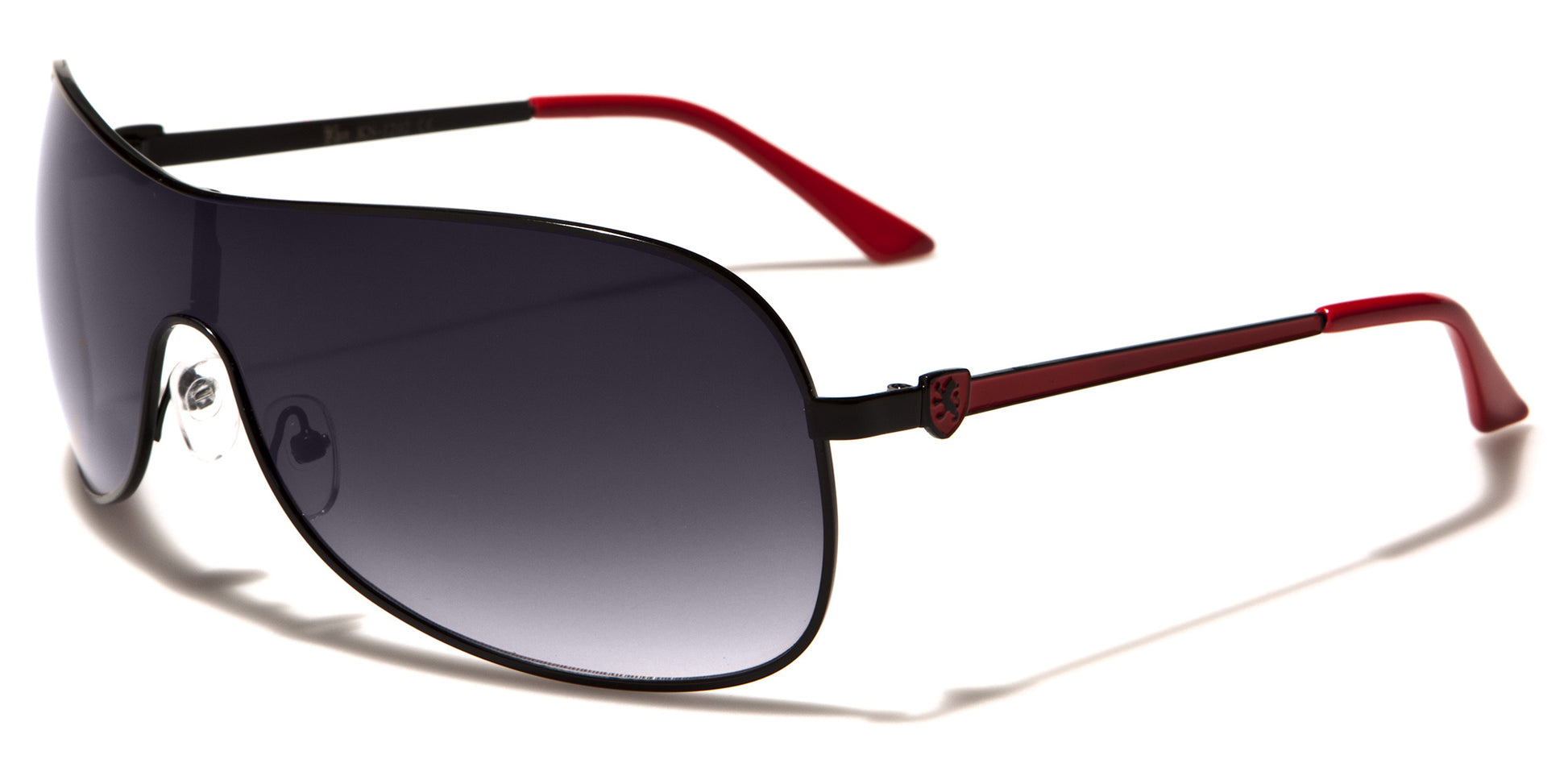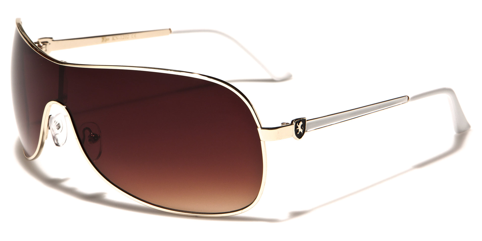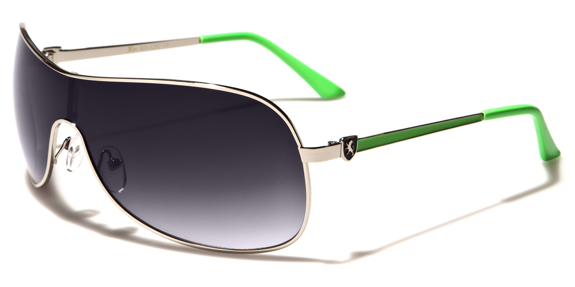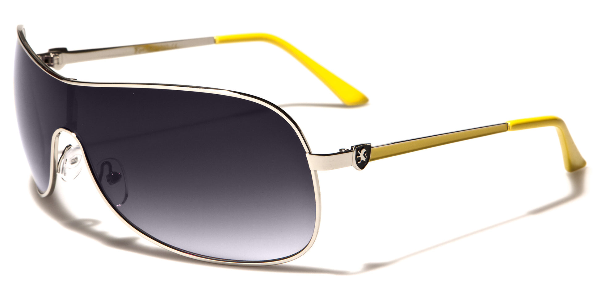Ultra cool sunglasses by Khan, these aviator shades are designed for men who want to stay ahead of trends and make their own style. The sunglasses are made of metal and plastic with a colorful look that really pops. The arms are straight and thin with curved earpieces that have plastic coating for better grip. The lenses are large and in the shield shape to better protect your eyes. There are adjustable nosepieces to help them stay on your head.