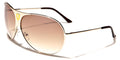 These unique aviator-style sunglasses are designed for men by Khan. The frames are metal and are ultra-thin, keeping them lightweight and flexible while remaining strong and durable. The lenses are larger than normal and have a gradient finish, offering privacy and protection from the sun, wind and rain. The middle of the frame sports the Khan logo on a thick divider, and below you have a nosepiece to ensure a solid fit. These cool shades can be purchased in a variety of colors by the dozen.