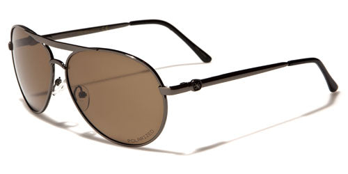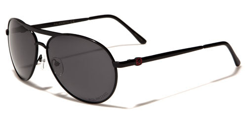 Aviator sunglasses with an extra spare look, these sunglasses for men are made by Khan and are specially designed to be lightweight and easy to wear. The frame is all metal, flexible, yet durable and strong. The frame has a double bridge and adjustable nosepieces, and the lenses are smaller than typical aviator glasses. The lenses are dark with a polarized coating to better protect your eyes from ultraviolet rays and sun glare. Purchase these great shades in bulk for extra savings.