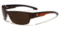 Thin and spare looking, these shades for men by Khan are designed to give off a sophisticated air that will get you noticed. The frame is metal, and the arms are plastic, made to be strong, flexible and comfortable to wear. The arms are textured for better grip and feature a Khan logo on the side. The lenses are dark and are rectangular in shape with rounded corners. The dark finish protects your eyes and enhances your privacy. Purchase in bulk for great savings.