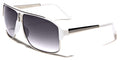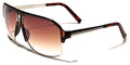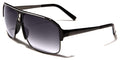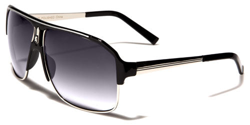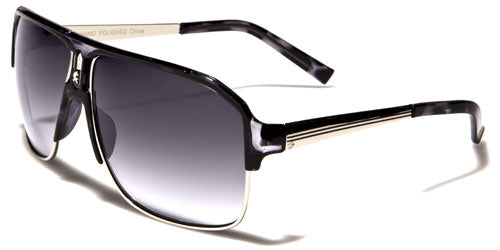 Aviator sunglasses don't have to be round. Take a look at these boxy aviator shades for men by Khan. The lenses have a squared off look, unique in this style of sunglasses. They are dark with a gradient finish to give added privacy and maximum protection from the sun. The frame is plastic, and the arms are metal, designed for strength, flexibility and comfort. The arms are straight and feature a striped pattern that flows to the plastic earpieces.