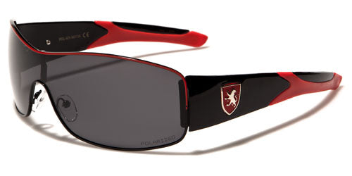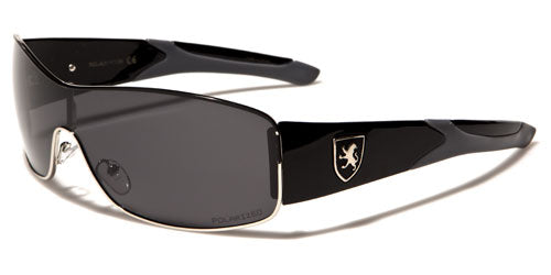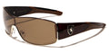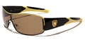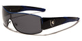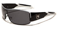 These sunglasses by Khan are made for men and sport a futuristic look that will help you show off your own forward-looking attitude. The frame is metal, and the arms are plastic, so the shades are flexible and comfortable, but rigid and strong enough for everyday use. The arms start thick and taper to the ear with a two-color look and the Khan logo displayed boldly on the side. The lenses are dark and in the shield style with plastic nosepieces for better fit.
