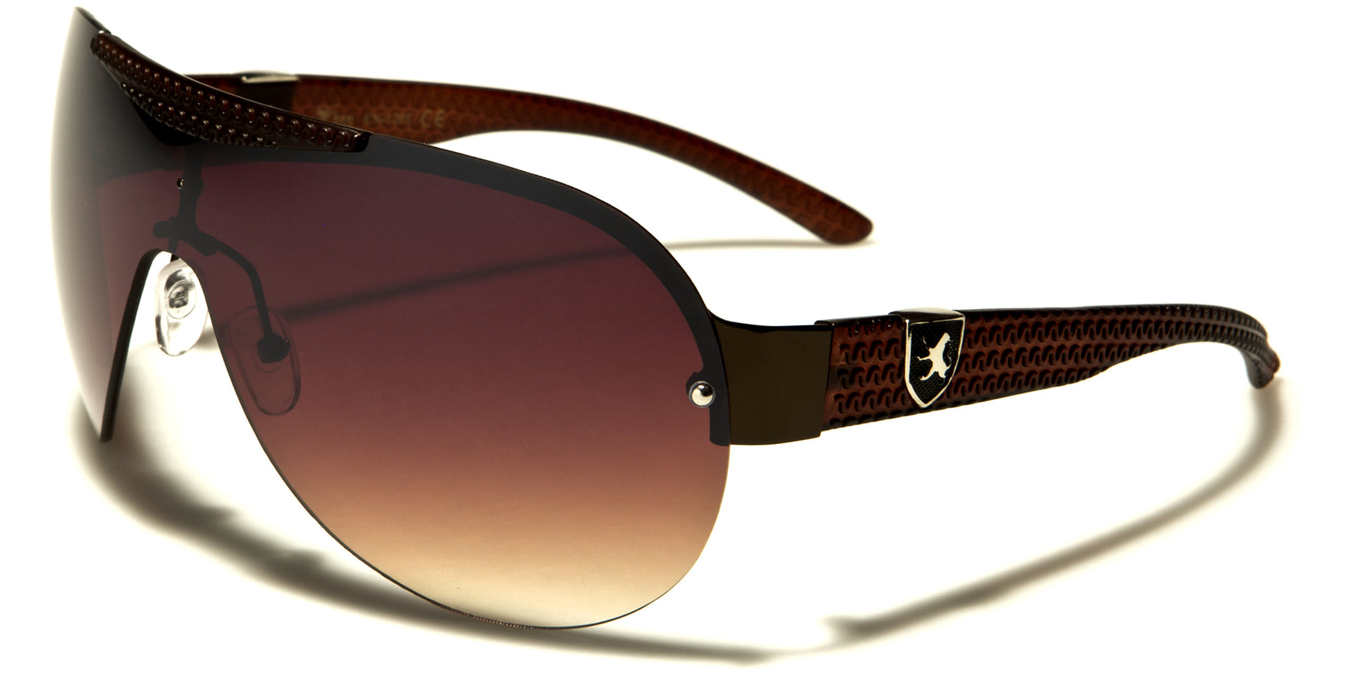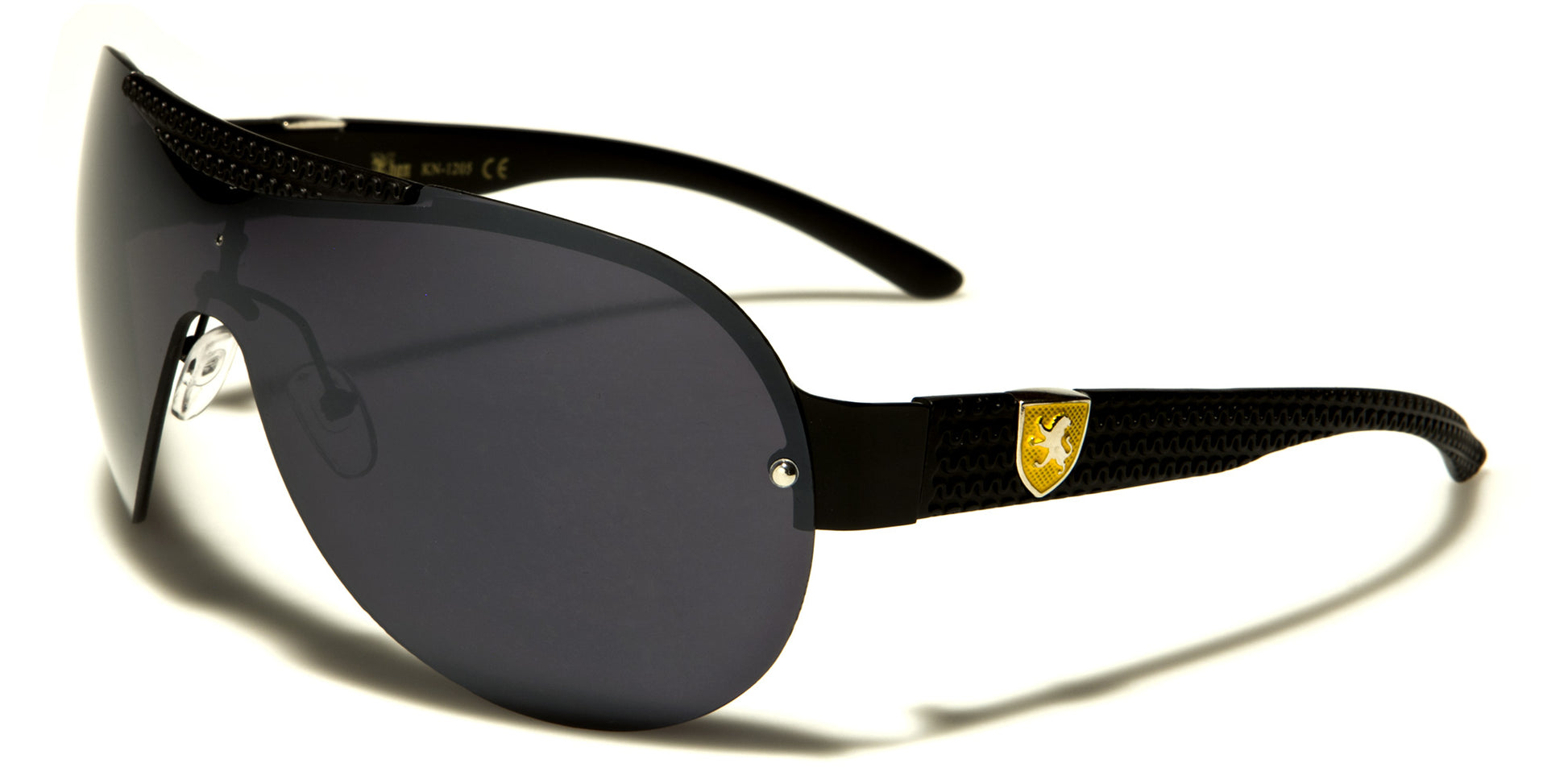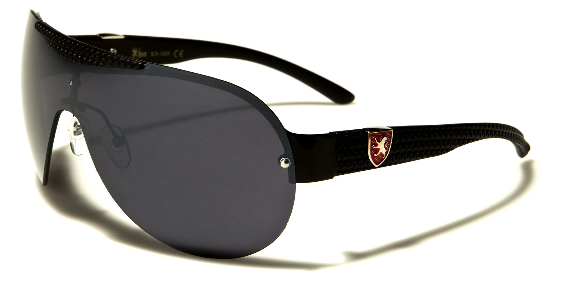 These Khan sunglasses reflect two popular styles: semi-rimless and aviator. Designed for men, these sunglasses are made of both metal and plastic, which makes them lightweight and comfortable. Highlighting the unique Khan logo on the temples, these sunglasses are sure to prevent sunlight from entering the eyes, which makes them an exceptionally popular choice among men. Available in assorted colors, options include black frames and a red Khan logo with smoke lenses, black frames and a yellow Khan logo with smoke lenses, silver frames and a black Khan logo with gradient smoke lenses, gunmetal frames and a black Khan logo with gradient smoke frames, and brown frames and a black Khan logo with brown lenses.