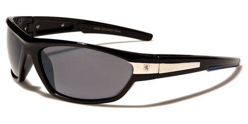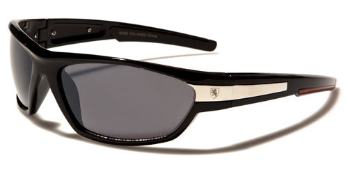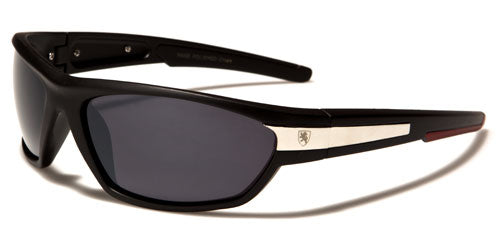 These men's sunglasses by Khan feature a stripe highlight along the sides, designed to be eye-catching in a muted way. The frame is made of plastic that is tough and durable, yet comfortable and easy to wear. The arms show the Khan logo in a subtle location within the stripe. The arms taper smoothly down to the ear where an added panel offers a better fit. The lenses are styled rectangles, and are smoke finished to offer better privacy and UV protection to your eyes.