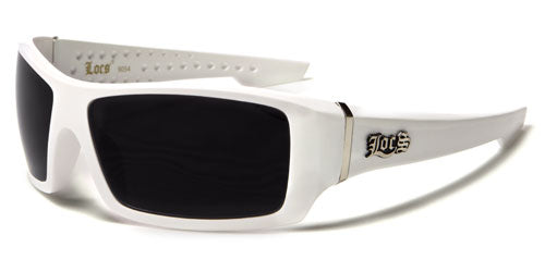 Check out these sweet and stylish shades by Locs made for men who want to look and feel cool wherever they go. The frame is made of white plastic, solid looking and tough, but also molded to fit comfortably on your head. The arms have a slight taper and an inward curve, plus a nice textured pattern on the interior for better fit and grip. The Locs logo is seen on the side in raised silver lettering. The lenses are dark and offer excellent protection from the sun.