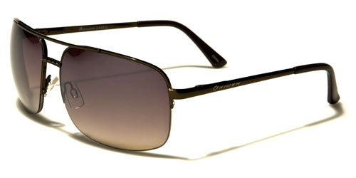 These Oxigen bulk sunglasses will be a perfect complement to almost any outfit. These men's aviator sunglasses not just protect from the sun's harmful UV rays and from glare, but do so with the maximum style. The classic design makes use of lightweight metal and features a semi-rimless frame and slim, straight temples. The metal temples in gunmetal, copper, silver or gold bear the Oxigen logo. The temple tips are wrapped in black or tortoise plastic. These aviators also come in gradient smoke, green or brown lens colors and feature transparent movable nose pads and a double bridge.