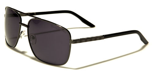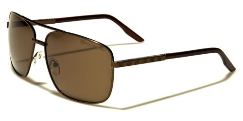 Come out and enjoy the sun! Whether you are on the water, on the road or just being outdoors, these Khan wholesale sunglasses will complement and complete your outfit. The brown and gray polarized lenses protect from glare and against UVA and UVB rays. The lightweight metal and plastic material ensure a comfortable fit that will not hamper your vision while you are in the thick of the outdoor action. These aviators for men feature a straight double bridge, transparent nose pads and full metal rims. The slim stems feature a series of horizontal dashes, and the temple tips are wrapped in black or brown plastic.