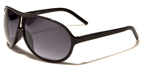 Aviator sunglasses are traditionally simple and in a common style, but these shades are definitely their own breed of cool. The frame is made of plastic with a thick face border, and they are made to be sturdy, but also lightweight and comfortable to wear. The arms are straight and thin and flow back to the curved earpieces. The lenses are large ovals with a dark finish that protects your eyes from ultraviolet rays. Purchase these great glasses in bulk for excellent savings.