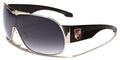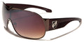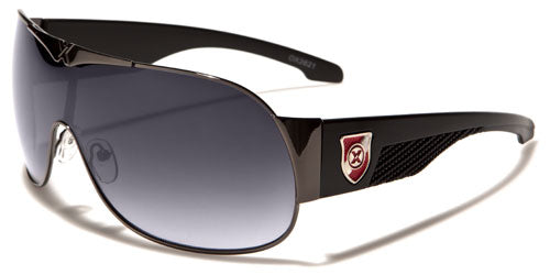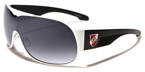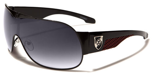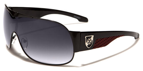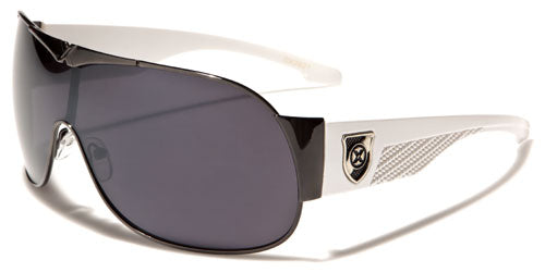 With a thick pair of arms and a large shield-style lens, these cool and hip shades by Oxigen are for men who truly want to look unique and stand out in a crowd. The frame is metal, and the arms are plastic, designed to be lightweight and comfortable to wear, but also strong and durable. The arms start thick and taper sharply to the ear, and they feature a cool textured and colored pattern on the side next to the Oxigen logo. The lenses are large and dark and offer great protection from UV rays.