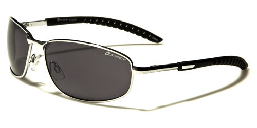 These Oxigen sunglasses reflect the style of today's modern man. Featuring a slight rectangular shape, these metal sunglasses include grip-style earpieces and adjustable nosepieces. Highlighting the distinct Oxigen logo on the lens, these sunglasses feature an affordable price point, which makes them ideal for resale in retail establishments. Available in a wide selection of assorted colors by the dozen, these sunglasses come in the following: silver frame with black earpieces and smoke lenses, black frame with orange earpieces and smoke lenses, gunmetal frame with orange earpieces and smoke lenses, gunmetal frame with black earpieces and green lenses, gold frame with black earpieces and brown lenses, and bronze frame with black earpieces and brown lenses.