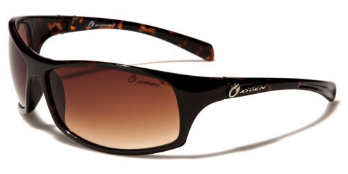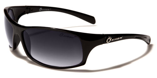 These flowing shades are designed by Oxigen for men and have a sweeping and rounded look and feel. The lenses are large and rectangular, with a dark finish to afford the wearer maximum privacy and protection from the sun. The frame is made of plastic, and, although thin, it is strong and durable. The arms sport the Oxigen brand on the side and curve slightly down to the earpieces. These great shades are available in several lens and frame color combinations.